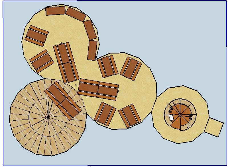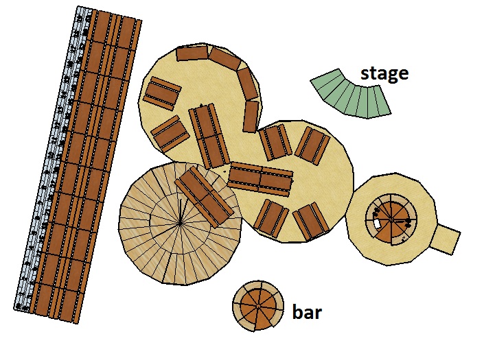 large bands can be accommodated by placing sound equipment and/or singers off the stage as per pic (click to enlarge)