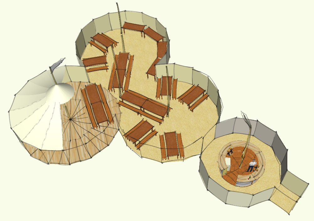 5m diameter 'lotus belle tent' furnished as a chill-out tent with loungers, pouffes and other items (ask for full list)